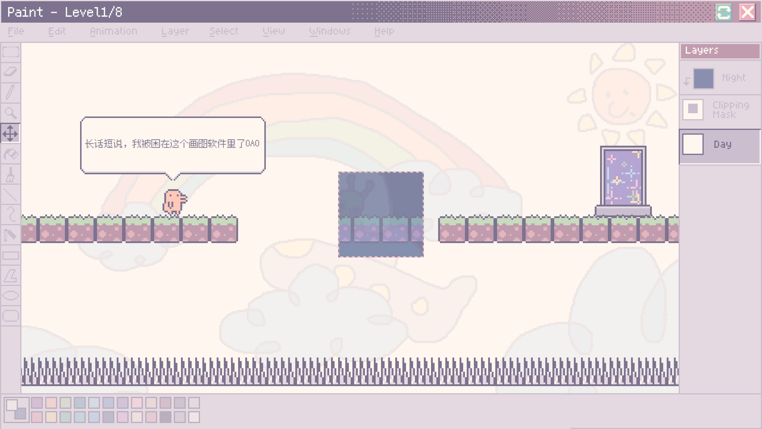 赛博小精灵Kuki被困在了你的画图软件里,使用剪贴遮罩(clipping mask)来帮助它重获自由!
